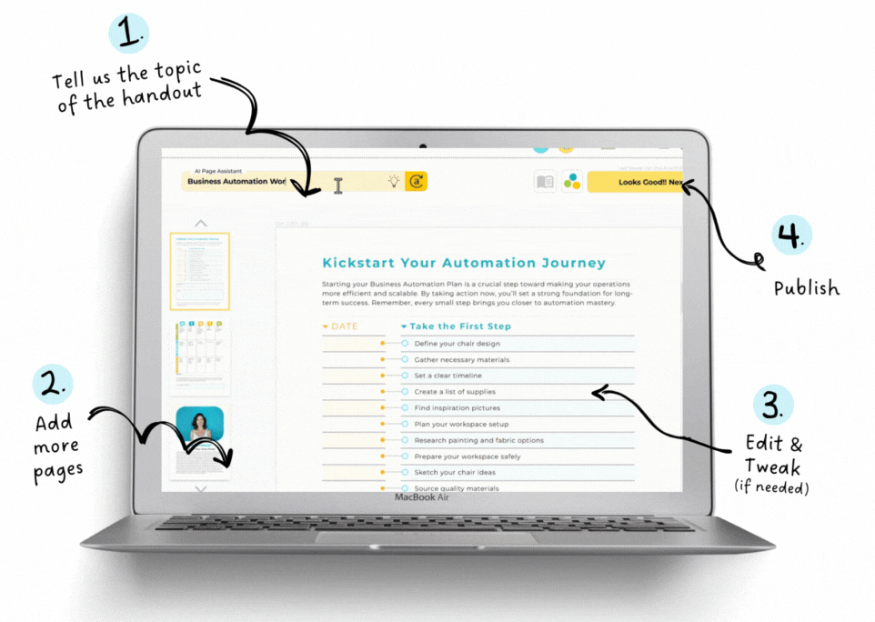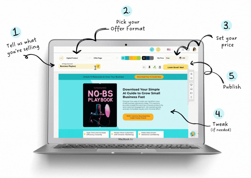 Push the yellow button and we handle the rest. We’ll create your PDFs, host your products, write your sales pages, build your website, generate your social posts, and even deliver everything to your buyers—automatically. It’s like having an entire marketing team… without lifting a finger.